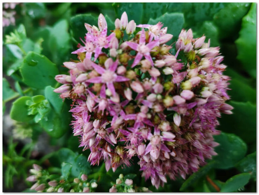 2022年8月7日の自宅付近を散歩していて見かけたベンケイソウのピンク色の花を「Xiaomi Redmi Note 10 Pro」で撮影しました。