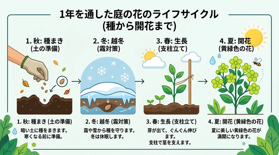 - 冬:寒冷地では霜除けなどの防寒対策を行い、冬越しをさせます 。