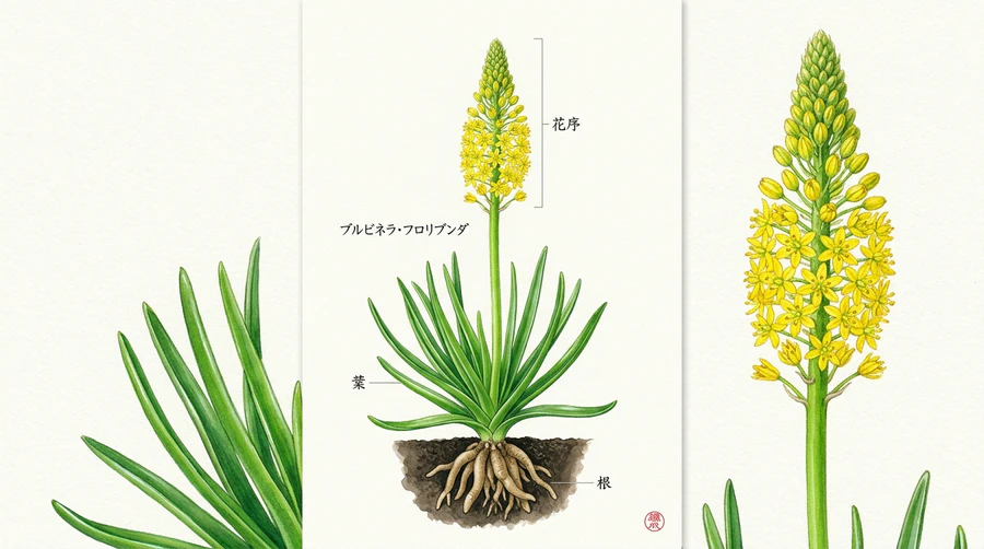 早春、まだ寒さが残る庭園や花壇に、突如として現れる鮮やかな黄色やオレンジ色の花穂。それはまるで、春の訪れを祝うキャンドルの灯火のようです。ブルビネラは、冬から春にかけての庭を彩る貴重な存在として、ガーデニング初心者から熟練の愛好家、さらにはプロのフローリストまで、幅広い層から支持されています。