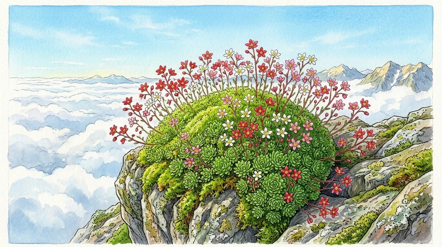 西洋の歴史と学名: 学名の「サクシフラガ(Saxifraga)」は、ラテン語の「$\textit{saxum}$(石)」と「$\textit{frangere}$(砕く)」が組み合わさった言葉です。これは、岩の割れ目に自生し、まるで岩を砕いて成長しているように見える姿から名付けられました。