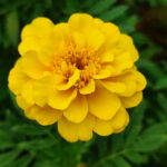 2022年8月6日の自宅付近を散歩していて見かけたマリーゴールドの黄色の花を「Xiaomi Redmi Note 10 Pro」で撮影しました。