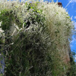 ナツユキカズラの蔓は柔軟ですが、年月が経つと根元が太く硬くなり(木質化)、樹木のような姿になります 。吸着根は持たず、自らの蔓をフェンスなどに巻き付けて登っていきます。英語で「Mile-a-minute vine(1分間に1マイル伸びる蔓)」と比喩されるほどの圧倒的な成長速度が最大の特徴です 。