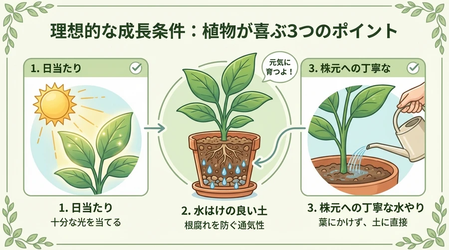 水はけ(排水性)を重視した土選びが不可欠です。市販の草花用培養土でも問題ありませんが、より排水性を高めるために、赤玉土4、腐葉土4、川砂2といった配合にするか、パーライトを少量混ぜると根腐れのリスクを大幅に軽減できます 。